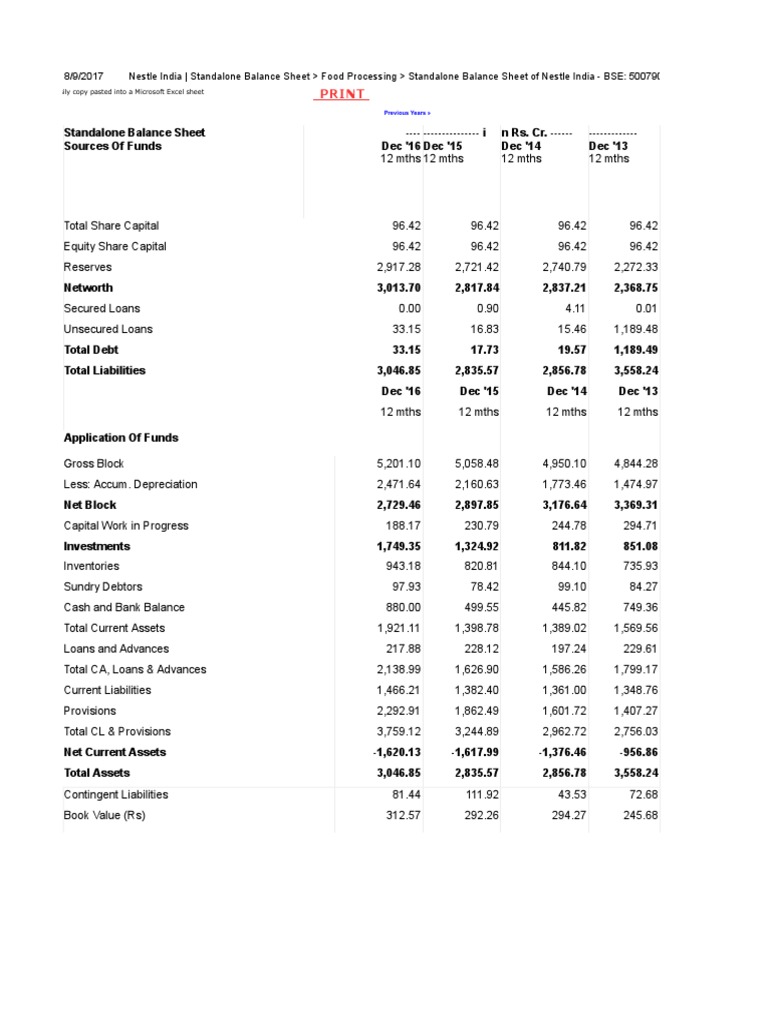 The Balance Sheet Page of Nestle India Ltd. Add to Cart. The balance sheet is a financial report that shows the assets of a business ie.